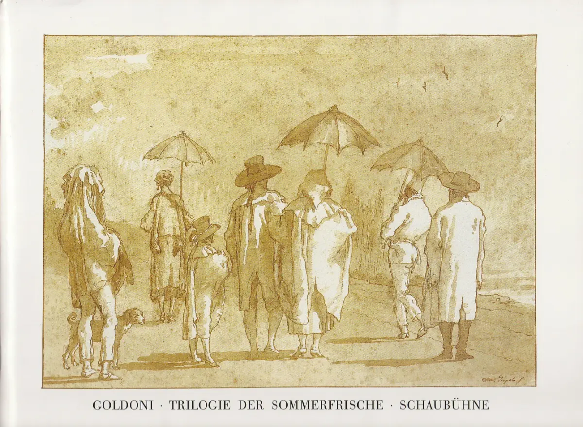 TRILOGIA DELLA VILLEGGIATURA ( 1761 ). Inszenierung nach einem Konzept von Erik Vos realisiert vom Ensemble der Schaubühne. Kostüme nach Entwürfen von Elena Mannini. Bühne: Tom Schenk. Mitwirkende: Peter Simonischek, Andrea Clausen, Oliver Stern, Karoline Eichhorn, Thomas Thieme, Wolfgang Michael, Werner Rehm, Katharina Tüschen, Corinna Kirchhoff, Rainer Philippi, Imogen Kogge, u.a. - Theaterprogramm, Opernprogramm, Ballettprogramm, Musicalprogramm, Konzertprogramm, Theatermemorabilia, Programmhefte Sammlung, deutsche Theatergeschichte.