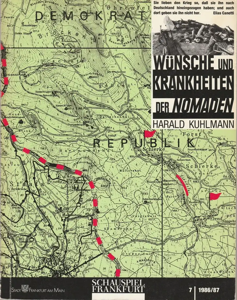 Schauspiel Frankfurt, Heiko Holefleisch, Pit Rampelt, Sabine Lecher, Wolfgang Heffe: Programmheft Uraufführung Harald Kuhlmann WÜNSCHE UND KRANKHEITEN DER NOMADEN Spielzeit 1986 / 87 Heft 7.