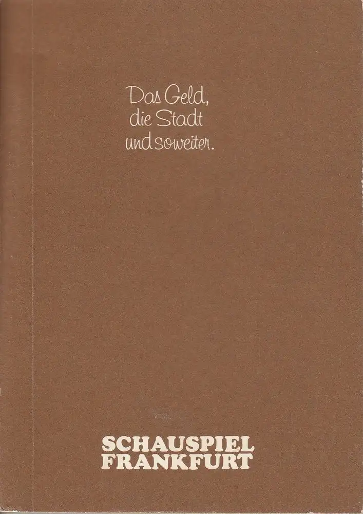 Komödie in Frankfurter Mundart von Wolfgang Deichsel. Ein Gründerzeitbilderbuch. Inszenierung: Christof Nel. Mitarbeit: Ulrich Waller. Bühnenbild: Fred W. Berndt. Mitarbeit: Peter Bohl. Kostüme: Nina Ritter. Mitarbeit: Margit Koppendorfer. Mitwirkende: Alwin Michael Rueffer, Antje Ruge, Rotraut de Neve, Ulrich Pleitgen, Peter Gavajda, Alexander Wagner - Theaterprogramm, Opernprogramm, Ballettprogramm, Musicalprogramm, Konzertprogramm, Theatermemorabilia, Programmhefte Sammlung, deutsche Theatergeschichte.