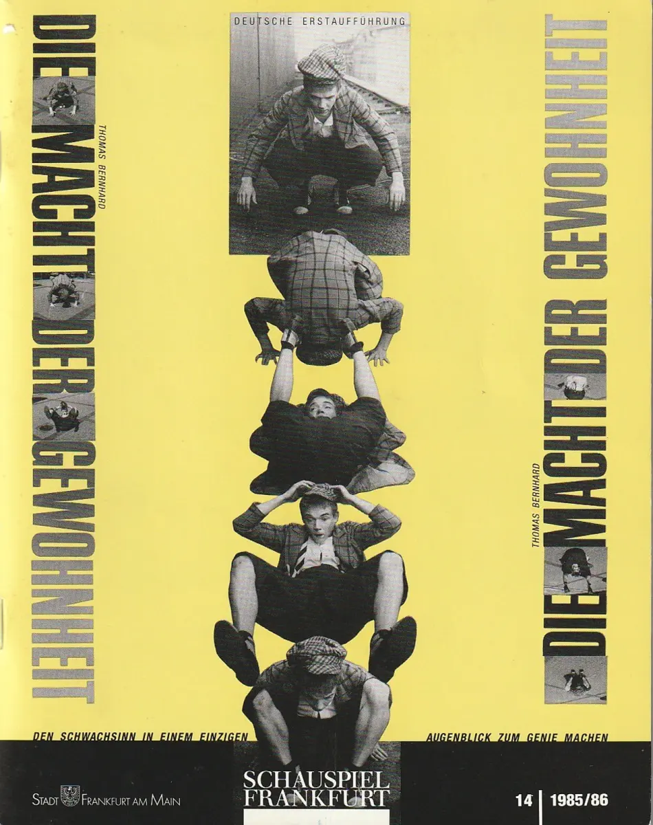 Schauspiel Frankfurt, Marc Günther, Ellen Werner, Elisabeth Sassmannshausen, Mara Eggert ( Probenfotos ): Programmheft Thomas Bernhard DIE MACHT DER GEWOHNHEIT Premiere 17. Mai 1986 Spielzeit 1985 / 86 Heft 14.