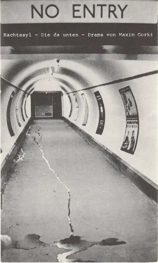 Die da unten. Drama. Aus dem Russischen von Werner Creutzinger. Inszenierung: Roberto Ciulli. Bühne und Kostüme: Gralf-Edzard Habben. Bühnenbidl: Dieter Purrmann. Kostüme: Marie-Theres Cramer. Mitwirkende: Hansjoachim Krietsch, Petra Redinger, Inge Caroline Gremm, Lothar Ostermann, Volkes Ross, u.a. - Theaterprogramm, Opernprogramm, Ballettprogramm, Musicalprogramm, Konzertprogramm, Theatermemorabilia, Programmhefte Sammlung, deutsche Theatergeschichte.