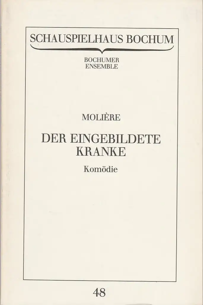Schauspielhaus Bochum, Bochumer Ensemble, Claus Peymann, Hermann Beil: Programmheft Moliere DER EINGEBILDETE KRANKE Premiere 29. September 1983 Spielzeit 1983 / 84 Programmbuch Nr. 48.