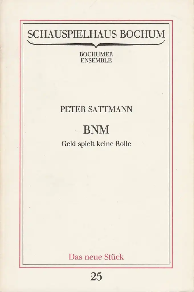 Schauspielhaus Bochum, Bochumer Ensemble, Claus Peymann: Programmheft Uraufführung Peter Sattmann BNM GELD SPIELT KEINE ROLLE 13. Juni 1981 Spielzeit 1980 / 81 Programmbuch Nr. 25.