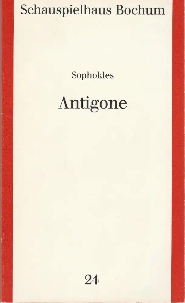 Schauspielhaus Bochum, Theresia Birkenhauer: Programmheft Sophokles ANTIGONE Premiere 31. März 1988 Kammerspiele Spielzeit 1987 / 88 Programmbuch Nr. 24.