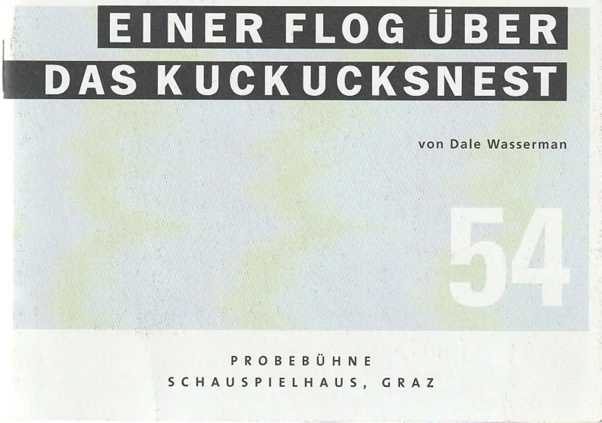 Schauspielhaus Graz, Probebühne, Karen Stone, Matthias Fontheim, Marc Steinbach, Peter Manninger ( Fotos ): Programmheft Dale Wasserman EINER FLOG ÜBER DAS KUCKUCKSNEST Premiere 16. Mai 2003 Spielzeit 2002 / 2003 Nr. 54.