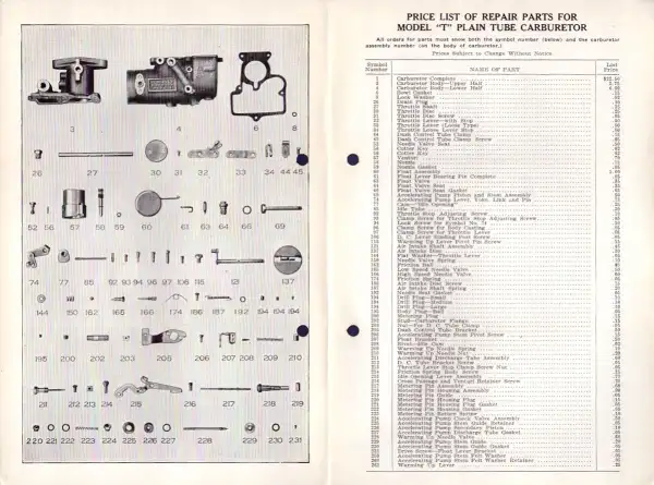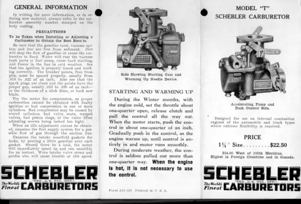 Schebler Vergaser Modell T Ersatzteilliste 5.1930