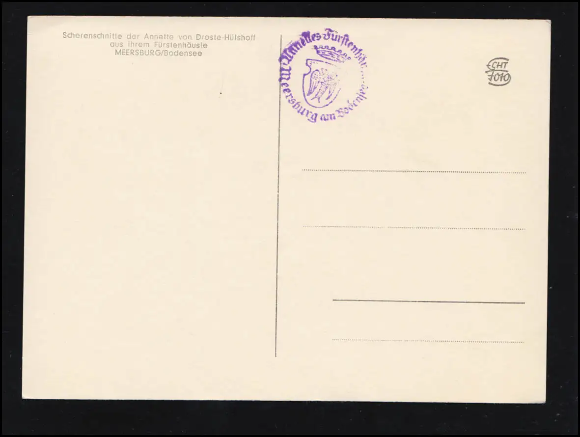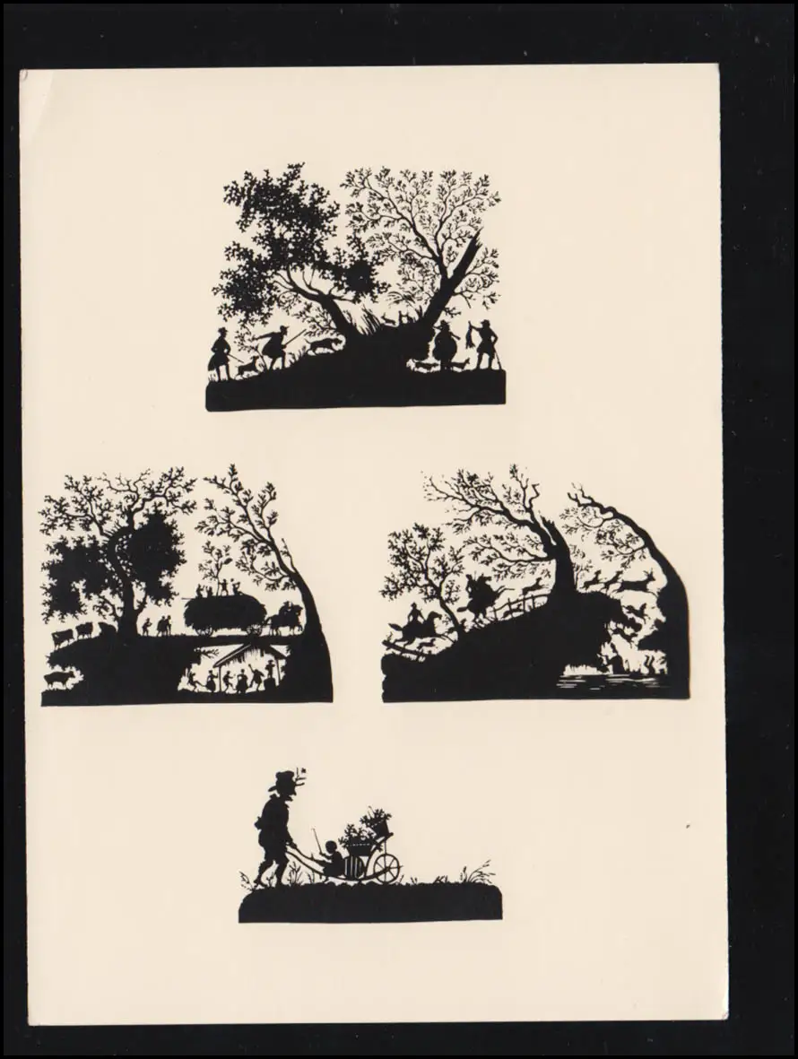 Schattenbildkarte Schwarzbild Schattenriss, Scherenschnitte der Annette von Droste-Hülshoff aus ihrem Fürstenhäusle Meersburg / Bodensee