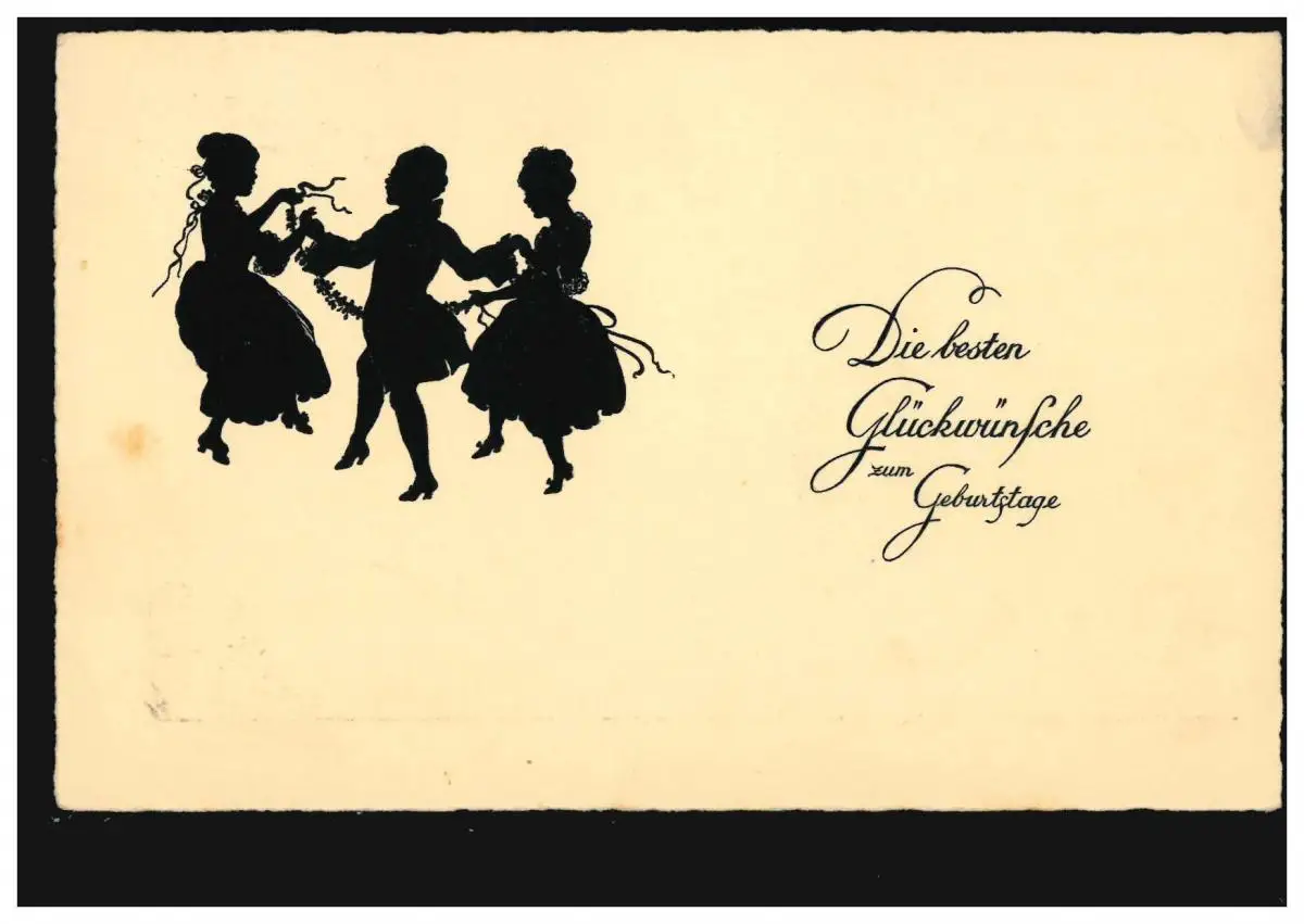 Scherenschnitt-AK Drei Tanzende, Pittius-Verlag, ESSLINGEN (NECKAR) 6.10.1926