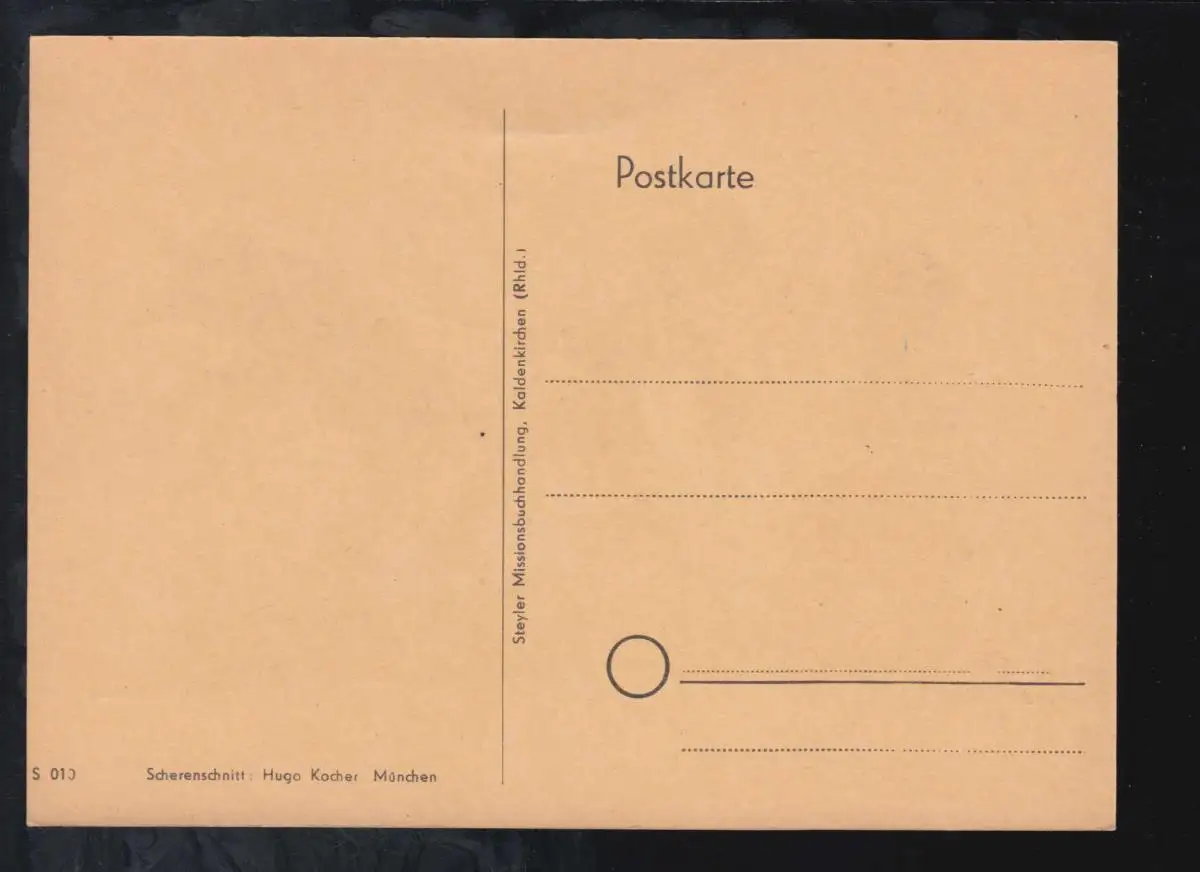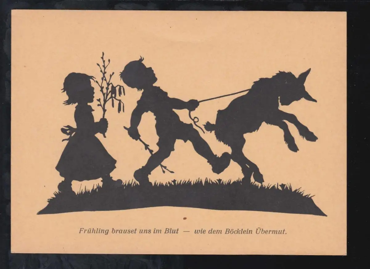 Schattenbildkarte Schwarzbild Schattenriss, Steyler Missiosnbuchhandlung Kaldenkirchen / Niederrhein, Frühling brauset uns im Blut - wie dem Böcklein Übermut. - Oben kleiner Bug