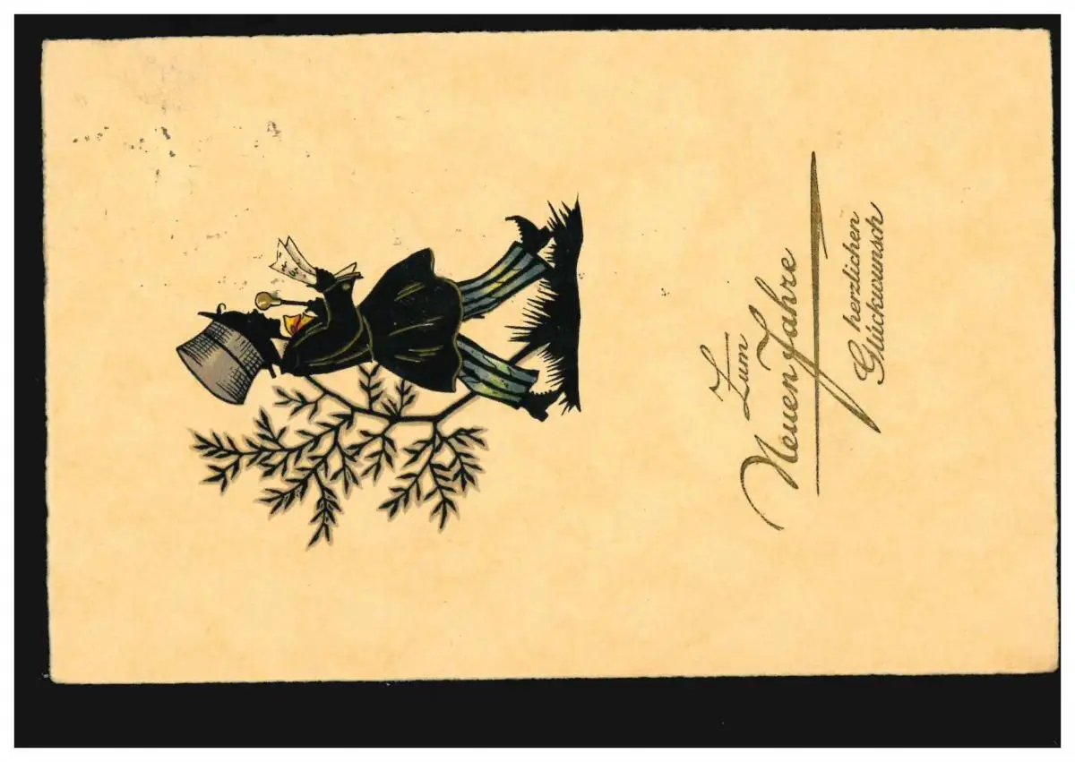 Scherenschnitt-AK Neujahr Junge im Frack mit Zeitung, Pittius-Verlag, GRAZ 1928