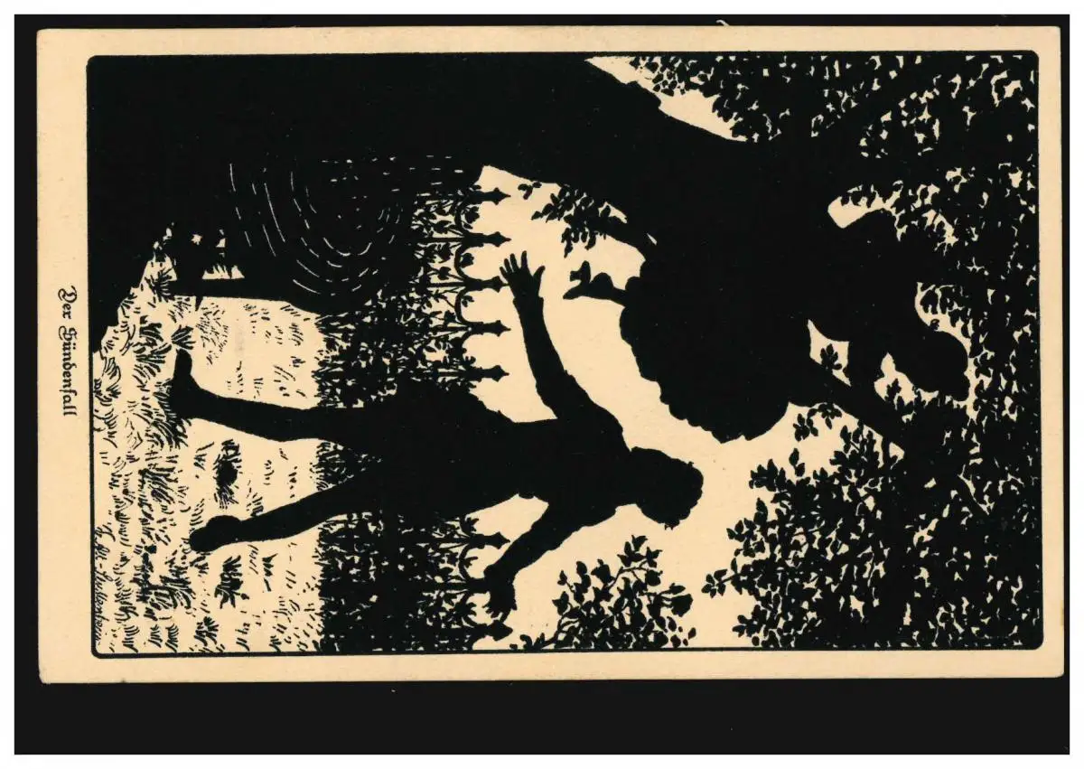Scherenschnitt-AK Ov. Alt-Stuttersheim: Der Sündenfall, Primus-Karte ungebraucht