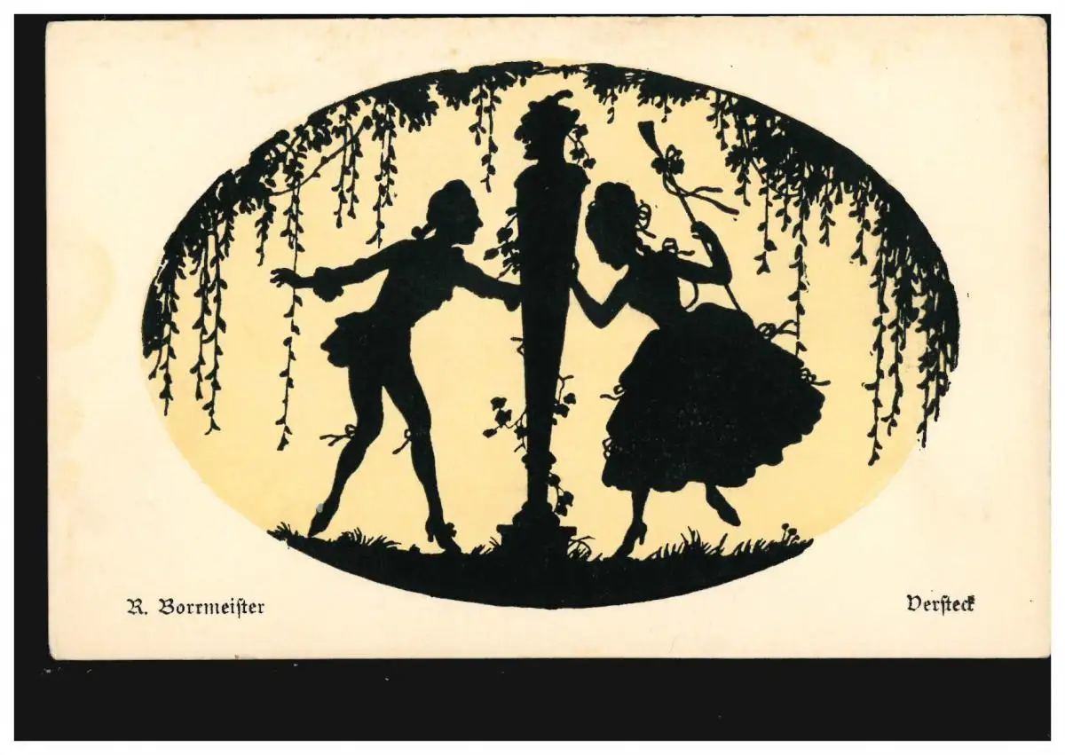 Scherenschnitt-AK R. Borrmeister: Versteck, Verlag HWB, ungebraucht