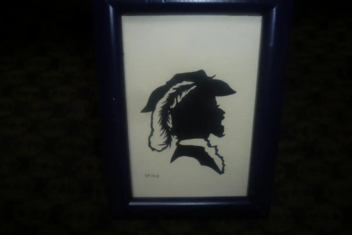 Scherenschnitte Edelmann oder Musketier im Seitenprofil signiert MP