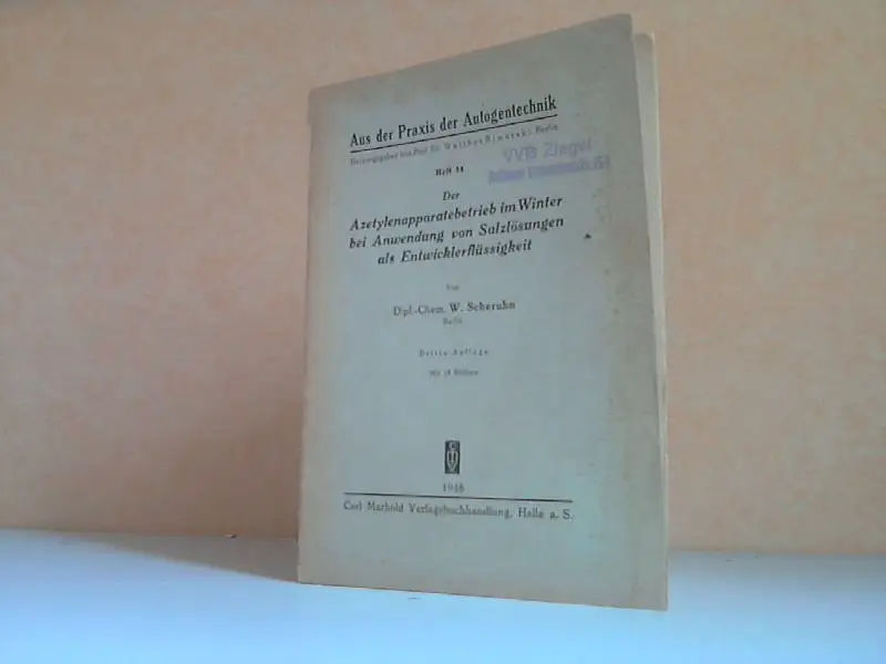 das Buch stammt aus einer Haushaltsauflösung, gebräunt, fleckig, Einbandkanten mit Bestoßungen, vorn auf Einband Stempel, ... Die Frage, ob es mit Hilfe von Salzlösungen, die erst unter Null Qrad gefrieren, möglich ist. den Azetylenentwicklerbetrieb auch im Winter störungsfrei durchzuführen, wird mit dem Einsetzen der kälteren Jahreszeit immer wieder gestellt. Sie hat auch durch die letzten strengen Winter wieder besonderes Interesse bekommen. Da vielfach in Praktikerkreisen die Ansicht vertreten wird, daß bei Null Qrad oder zumindest sehr bald darunter die Azetylenentwicklung zum Stillstand kommt, ist diese Frage vielleicht niemals ernstlich nachgeprüft worden; jedenfalls wurde darüber nirgends positiv berichtet. Es erschien angebracht, die Frage einmal genauer zu untersuchen. Über die angestellten Versuche wird nachstehend berichtet. ... (aus dem Heftchen) Beschreibung vom Antiquariat Ardelt 4g4b Antiquariat Ardelt