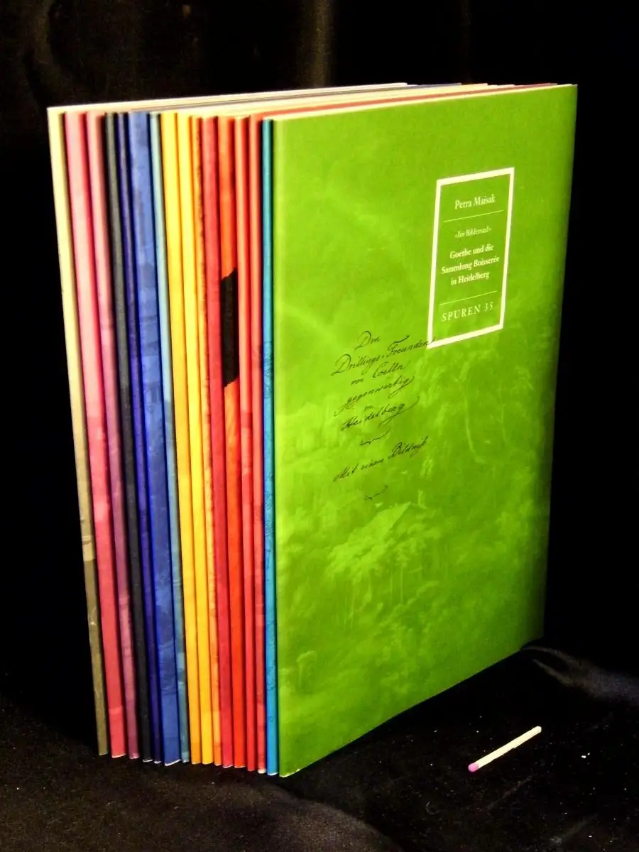 Titel: (Sammlung) Spuren. 16 Bände - Petra Maisak: „Im Bildersaal“. Goethe und die Sammlung Boisseree in Heidelberg. + Rolf Vollmann: „Rasch flogen die Stunden dahin ...“. Philipp Joseph Rehfues in Tübingen. + Benigna Schönhagen: „Ja es ist ein weiter Weg von der Judenschule bis hierher ...“. Kilian von Steiner und Laupheim. + Klaus Fischer: „Wie das Schicksal die Dinge fügt!“. Otto von Corvin in Bruchsal und Rastatt. + Michael Kienzle / Dirk Mende: „Wollt ihr den alten Uhland niederreiten?“. Wie die 48er Revolution in Stuttgart ausging. + Rolf-Dieter Kluge: „...ein großer Garten, dahinter bewaldete Berge...“. Anton Tschechow in Badenweiler. + Hans Albrecht Oehler: „Ihr Kinderlein, kommet, o kommet doch all“. Christoph von Schid in Oberstadion. + Wolfgang Heidenreich: „...eine Notherberge für meine letzten Jahre...“. Peter Huchel in Staufen im Breisgau (1972-1981). + Bernhard Fischer: „...auf seine Güter abgereist...“. Die Verleger Johann Friedrich und Georg von Cotta auf Dotternhausen. + Armin Elhardt: „Legationsrat Richter? Den kennt niemand ...“. Jean Pauls Besuch in Stuttgart. + Johannes Werner: noch einmal schaukeln wie als Kind. Marie Luise Kaschnitz und Karlsruhe. + Enrica Yvonne Dilk: „Heute las Tieck unvergleichlich schön...“. Eduard von Bülow und Hans von Bülow in Stuttgart. + Volker Michel: „Ich komme auch vom Lande und bin ganz froh darum“. Thomas Strittmatter und St. Georgen im Schwarzwald. + Karsten Blöcker: „Ach, es ist so hart und traurig!“. Tony Buddenbrook in Esslingen am Neckar. + Jochen Greven: „Wer hat mit Gold zu tun ... dem Anfang und Ende?“. Klaus Nonnenmann in Pforzheim. + Axel Gellhaus: „seit ein Gespräch wir sind. Paul Celan bei Martin Heidegger in Todtnauberg - aus der Reihe: Spuren - Band: 35, 41-48, 53-56, 58-60 LAGERRÄUMUNG