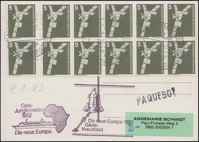 Schiffspost Gala Jungfernreise MS Europa Gästekreuzfahrt 8.1.82 MeF AK Blumen