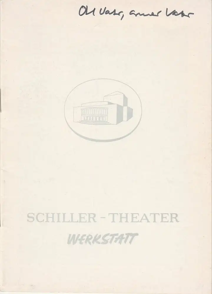 original Heft, nicht paginiert, diverse Abbildungen ( darunter Szenenfotos zu verschiedenen Aufführungen ), beiliegende Besetzungsliste. Zustand: gut, Stücktitel auf Deckel
