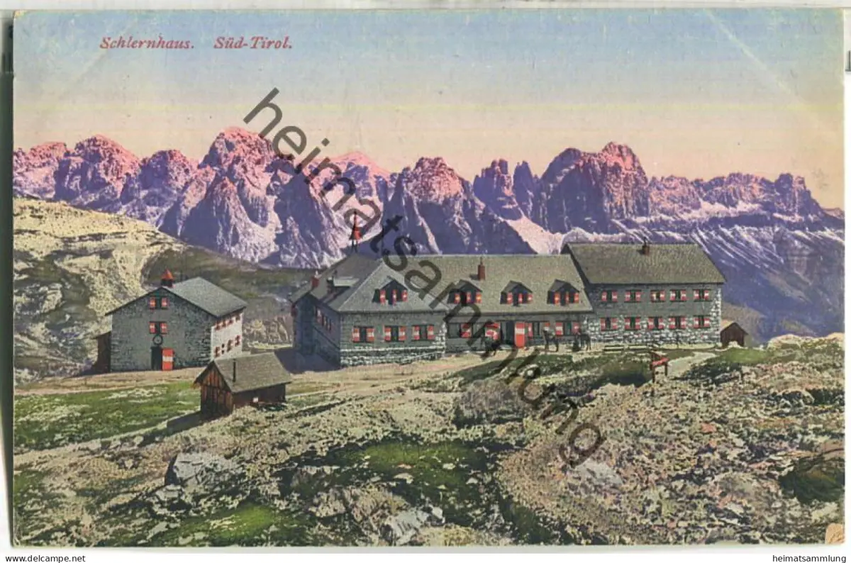 Schlernhäuser gegen die Rosengarten Dolomiten - Verlag Joh. F. Amonn Bozen (E88735) gel. 1921