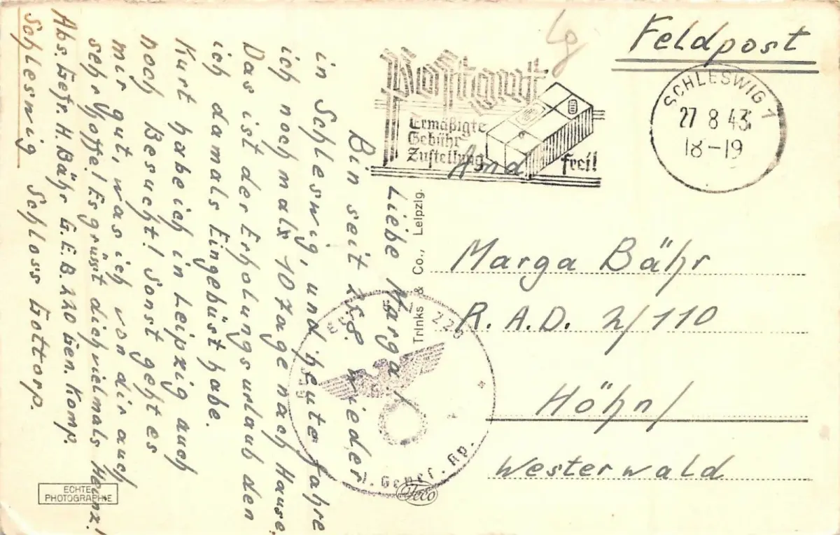 Schleswig Blick von der Michaelis-Allee Feldpostkarte AK 1943