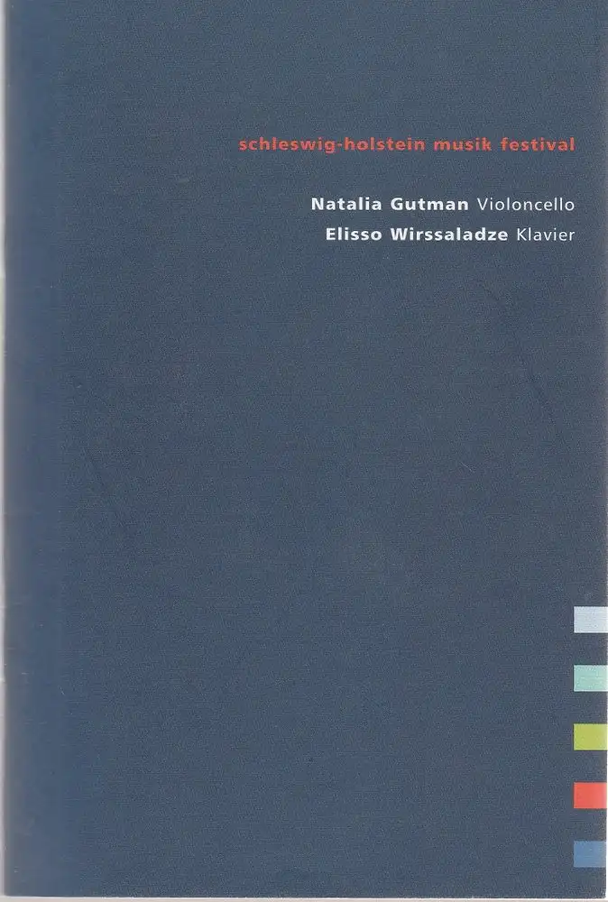 Natali Gutman ( Violoncello ), Elisso Wirssaladze ( Klavier ). Programmfolge: LUDWIG VAN BEETHOVEN: Sonate für Horn ( Violoncello) und Klavier F-Dur op. 17. EDVARD GRIEG: Sonate für Violoncello und Klavier a-Moll op. 36. SERGEI RACHMANINOFF: Sonate für Violoncello und Klavier g-Moll op. 19 - Theaterprogramm, Opernprogramm, Ballettprogramm, Musicalprogramm, Konzertprogramm, Theatermemorabilia, Programmhefte Sammlung, deutsche Theatergeschichte.