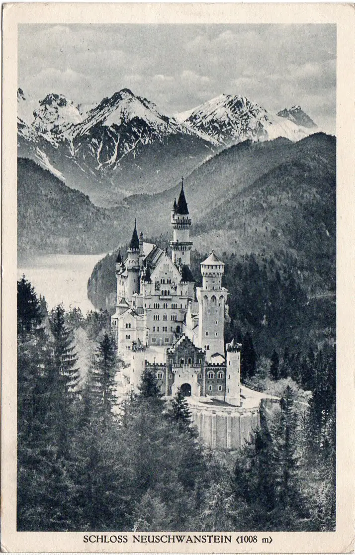 Schloss Neuschwanstein, 1922 m. 50 Pf.+3 Mk. v. Hohenschwangau n. GB gebr. sw-AK