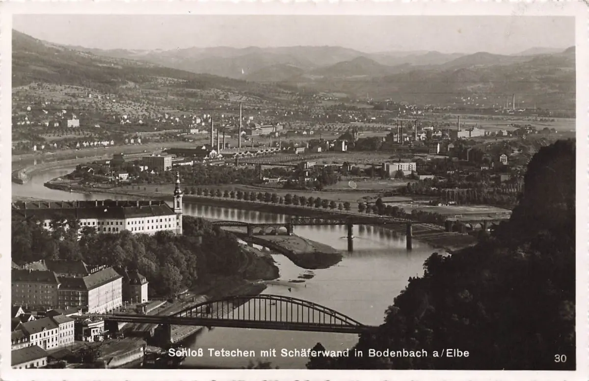 Schloss Tetschen mit Schäferwand Bodenbach Sudetenland Postkarte AK 1941