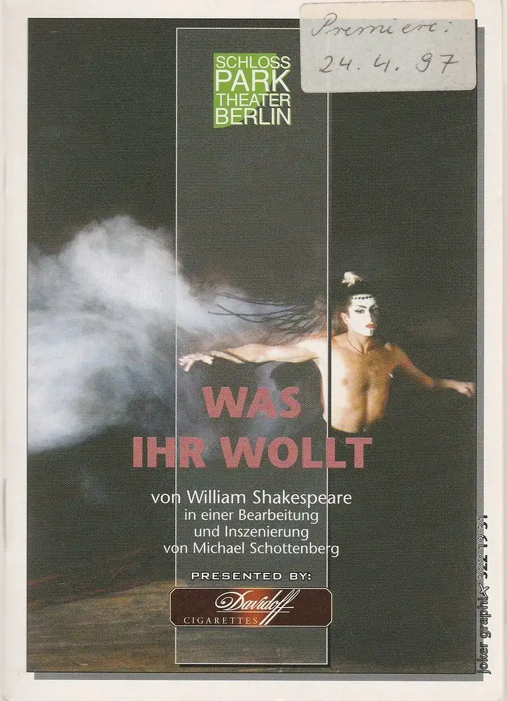 Schloßpark-Theater Berlin, Heribert Sasse, Michael Schindlbeck: Programmheft William Shakespeare WAS IHR WOLLT Premiere 24. April 1997.