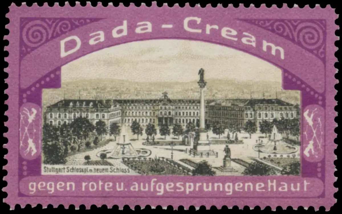 Dada-Cream, gegen rote und aufgesprungene Haut. Violett, Größe/Zustand: 3x5 , guter Zustand, Original alte Reklamemarke die seinerzeit für die Werbung benutzt wurde