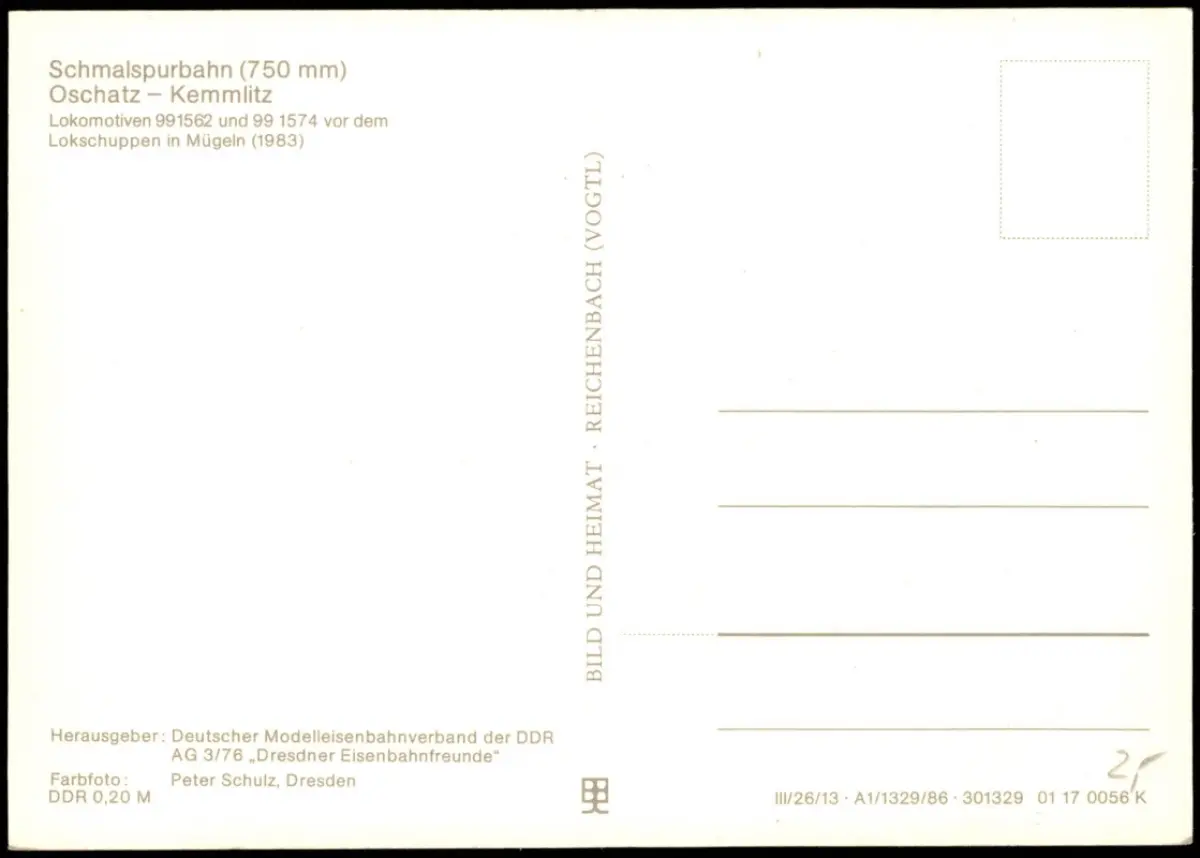 Schmalspurbahn Oschatz-Kemmlitz Lok. 991562 991574 vor Lokschuppen Mügeln 1986