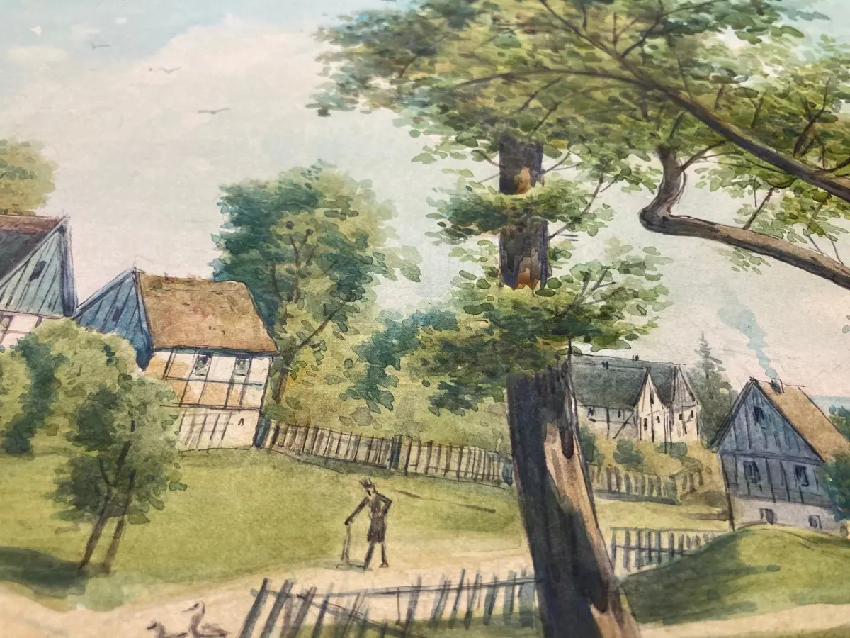 Johann, Bernhard Schmelzer 1833- am 26. Dezember in Annaberg als viertes Kind des Grenzzolleinnehmers in Kühnhaide- später Steuereinnehmer und Postverwalter- Christian Ehrenfried Schmelzer und seiner Ehefrau Chritiane Sophie Schmelzer, geb. Rossmann, geboren. Sein Vater starb früh, somit war die Familie unterstützungsbedürftig. 1848- 1860 Studium an der Dresdner Kunstakademie. Er war dort später Schüler von Julius Hübner in Historienmalerei. 1856 Erhielt er die"Kleine goldene Medaille"- eine hohe Auszeichnung- für sein Gemälde" Der Tod des Wilddiebs". ab 1860 Schüler bei Ludwig Richter in Dresden in Landschaftszeichnen. Auch starke Beeinflussung durch dessen Genrekleinkunst. um 1860-1892 Tätigkeit für mehrere Verlage verchiedener Städte als Illustrator von Kinderbüchern und Jugendzeitschriften. Außerdem Mitarbeit bei den "Dresdner Nachrichten" als bedeutender Humorist und Karikaturist. bis 1909 Aus Notlagen heraus, Ausführung von Werbeaufträgen was damals negativ bewertet wurde und sein Ansehen schädigte. 1909 am 10.September in Dresden an Armut gestorben. unten links signiert: J. B. Schmelzer f. Dresden