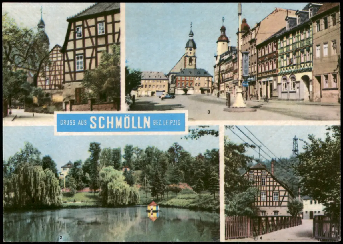 Schmölln DDR MB mit Malerwinkel Brauerei-Teich Marktplatz Aussichtsturm 1968
