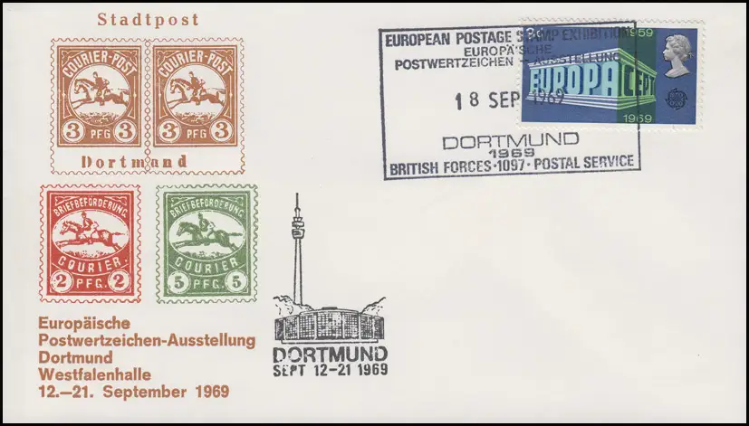 Schmuck-Brief Briefmarkenausstellung DORTMUND 1969, England 512 SSt 18.9.1969