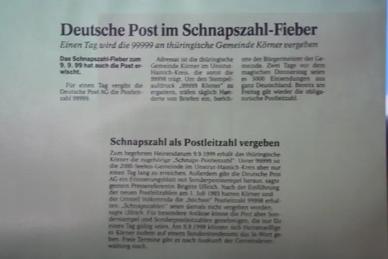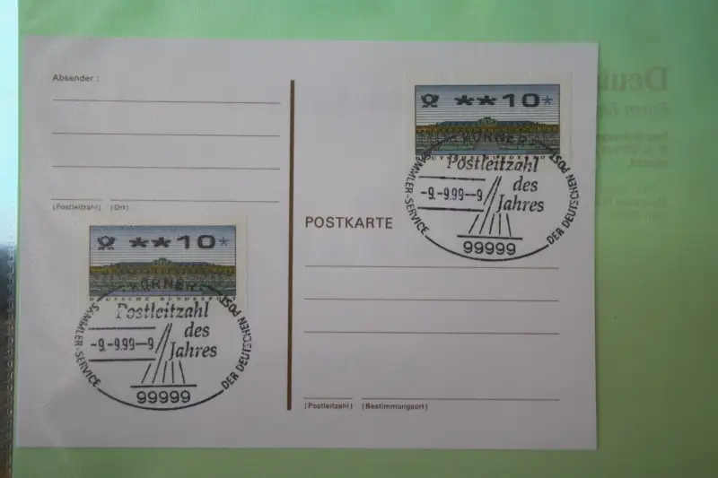 Karte mit dem obigem Datum und PLZ 99999 und Legende. Ebenfalls lieferbar Belege mit Schnapszahl von 1966, 1977 und 1988.