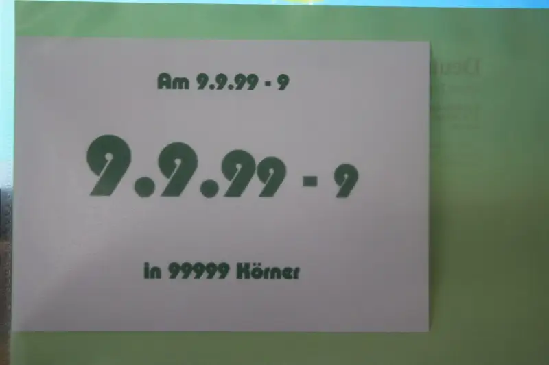 Schnapszahl-Beleg 9.9.99-9