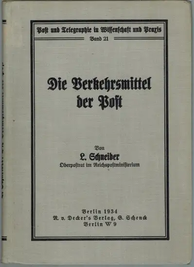 Schneider, Laurenz: Die Verkehrsmittel der Post. [= Post und Telegraphie in Wissenschaft und Praxis. Band 21] Berlin, R. v. Decker's Verlag G. Schenck, 1934.