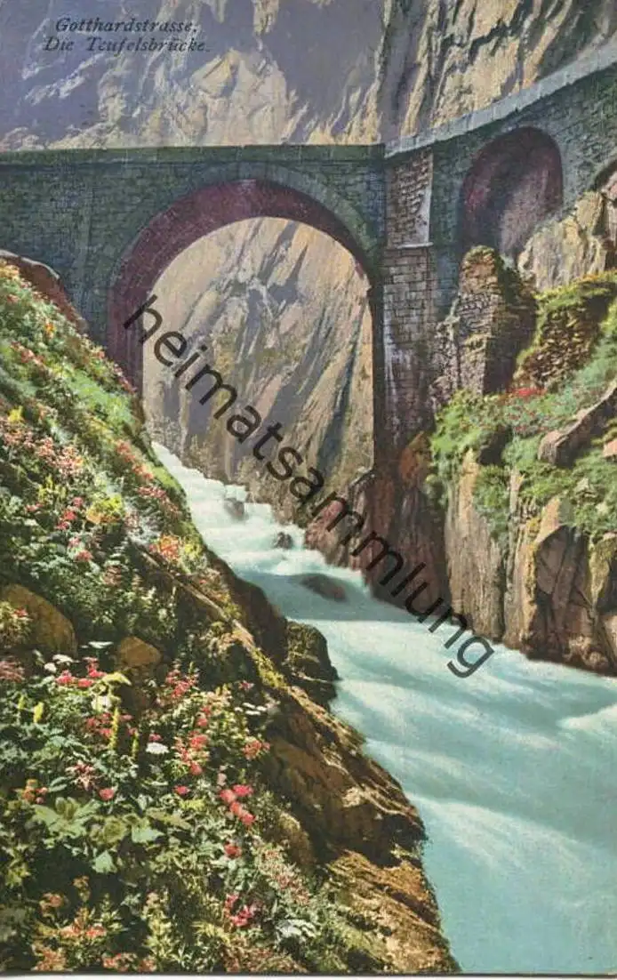Schöllenen - Teufelsbrücke - Verlag E. Goetz Luzern gel. 1922