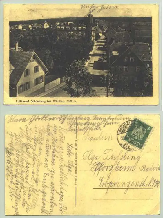 Artikelbeschreibung u. Zustand : Siehe Scan. Weitere Infos : Ansichtskarte. Luftkurort Schoemberg b. Wildbad. PLZ-Bereich pauschal 75328. Postalisch gelaufen 1925