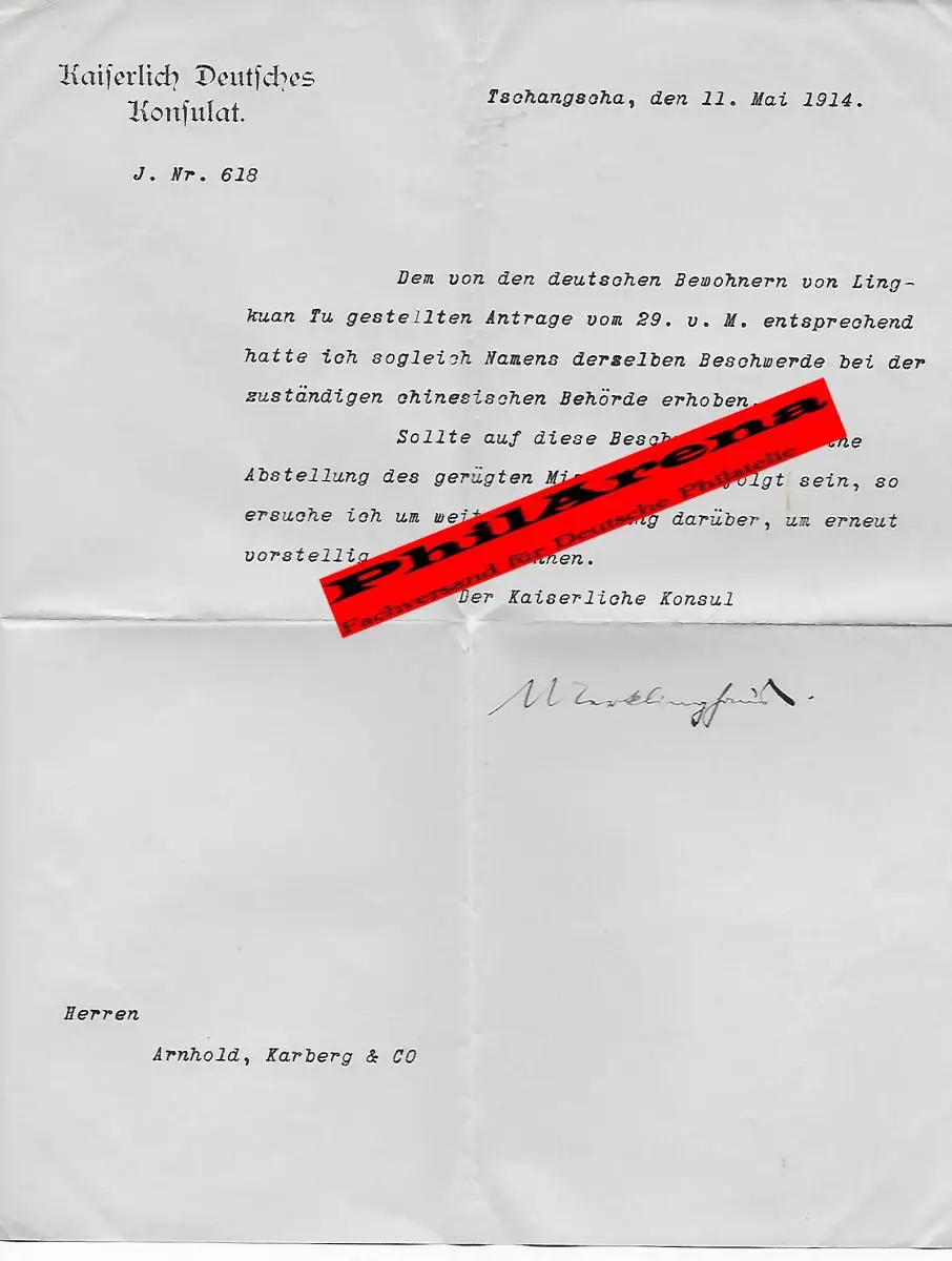 Schreiben Kaiserliches Deutsches Konsulat, Tschangscha/Lingkuan Fu, 1914
