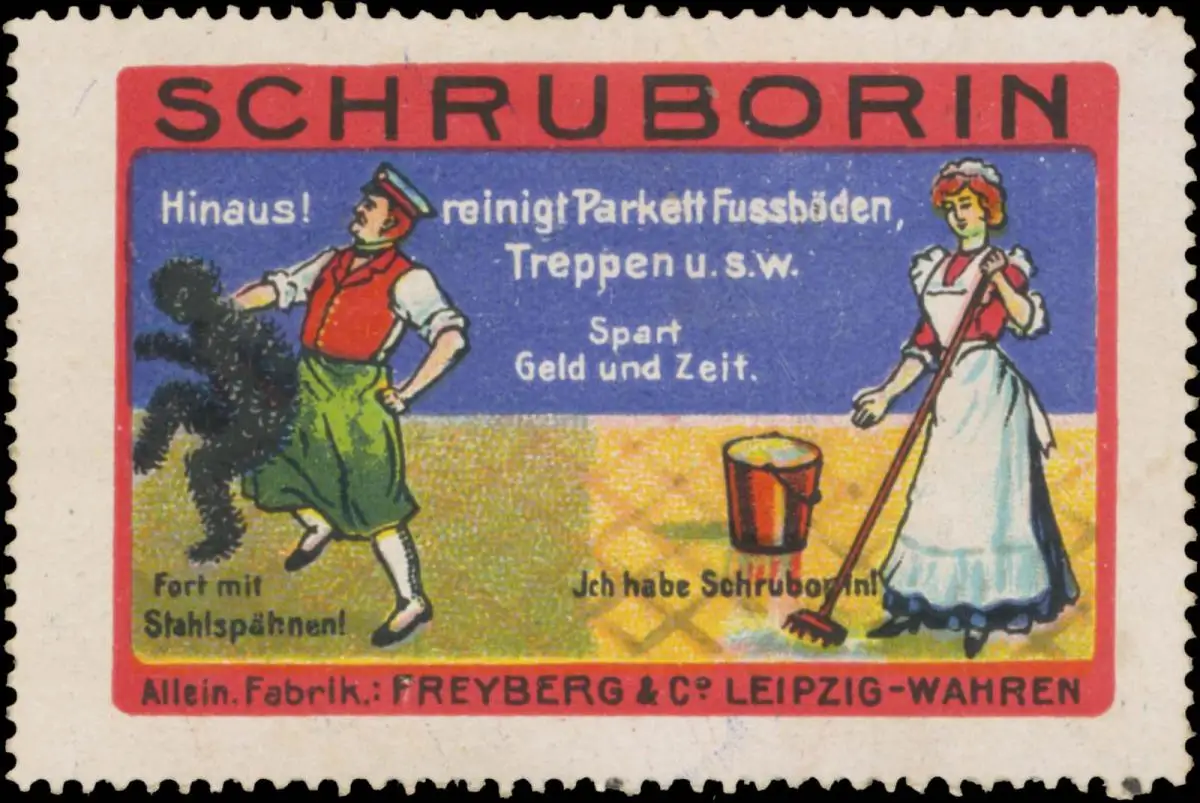 reinigt Parkett Fussböden, Treppen u.s.w. Reinigung, Größe/Zustand: 4x6 , guter Zustand, Original alte Reklamemarke die seinerzeit für die Werbung benutzt wurde