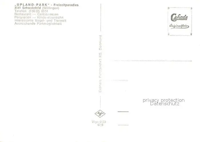 Schwalefeld Upland Park Restaurant Terrasse Schwalefeld postalisch nicht gelaufen nach 1965 Erhaltung siehe scans [WerneD78] WernPID7