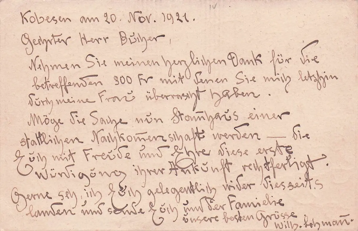 Am unteren Rand des Bildes ist der Schriftzug "WENNUSER AS USFAHRT 1 1921" zu erkennen.
