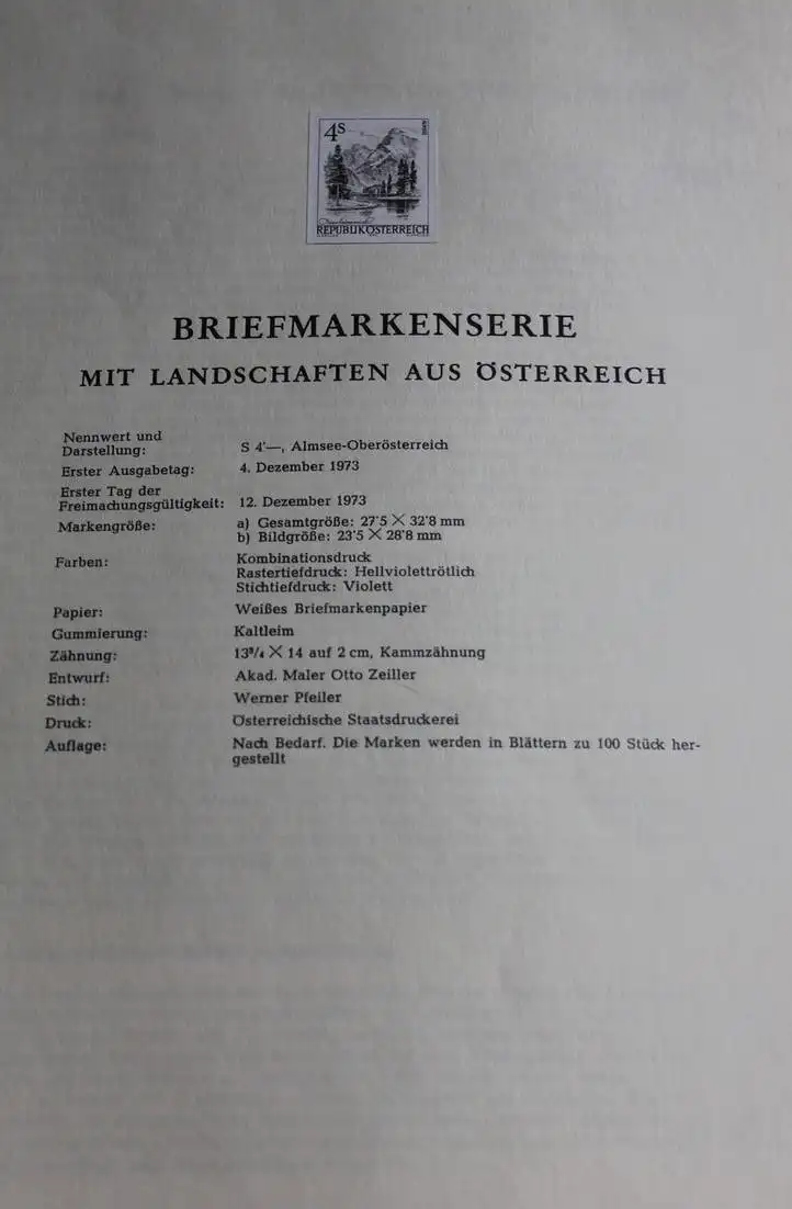 Schwarzdruck auf Schwarzdruckblatt Österreich 1973 zur Ausgabe: Landschaften aus Österreich; 4 S