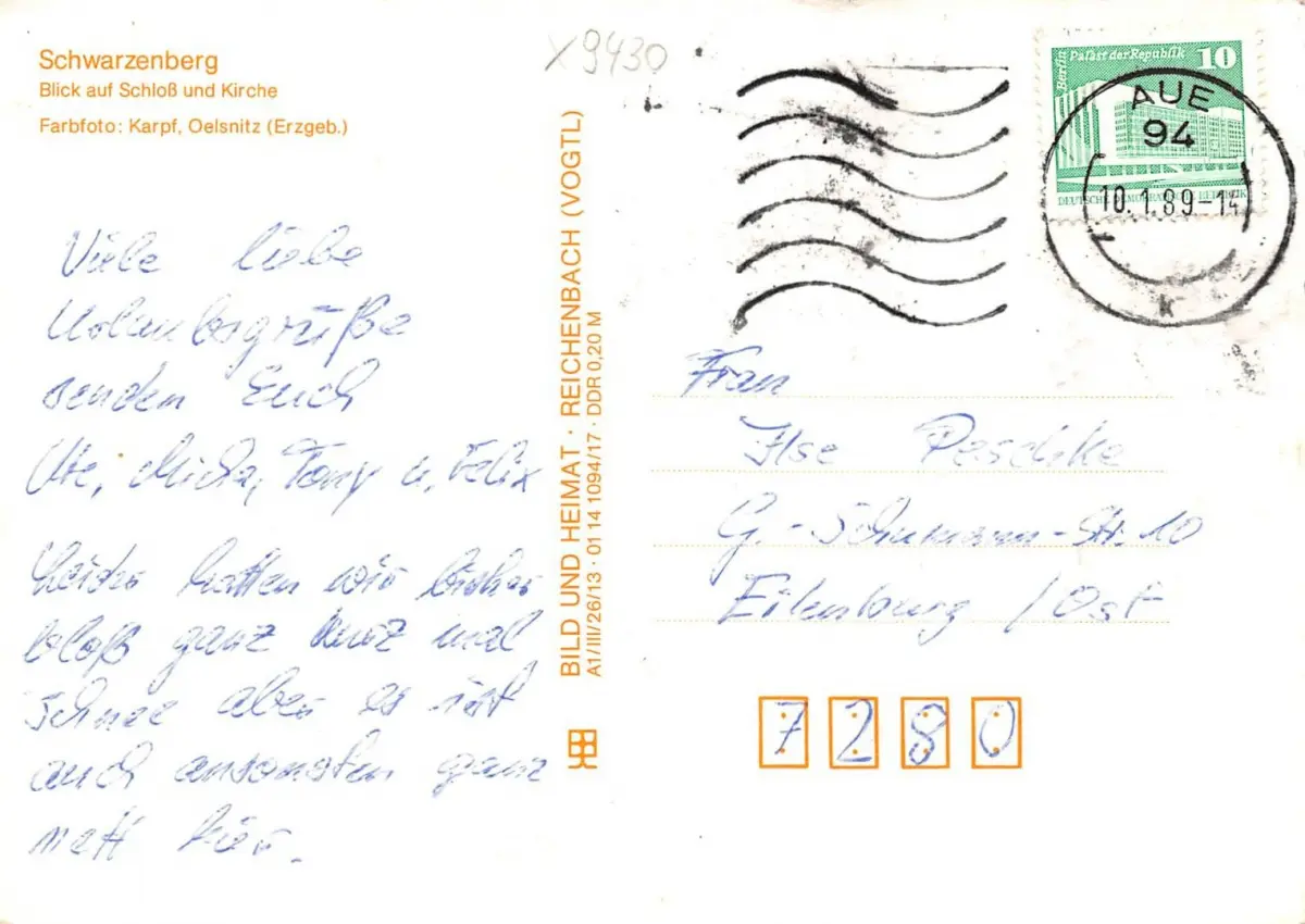 Schwarzenberg (Erzgebirge) Blick auf Schloß und Kirche gl1989 181.245