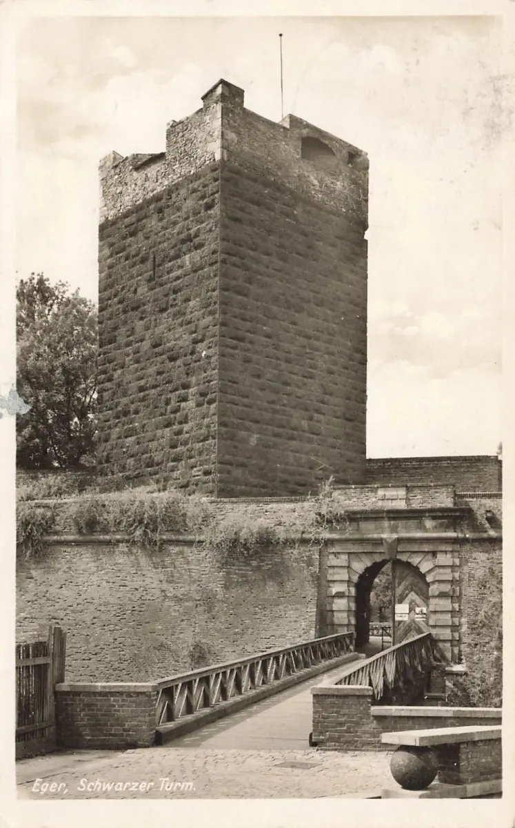 Schwarzer Turm in Eger Sudetenland Postkarte AK 1944