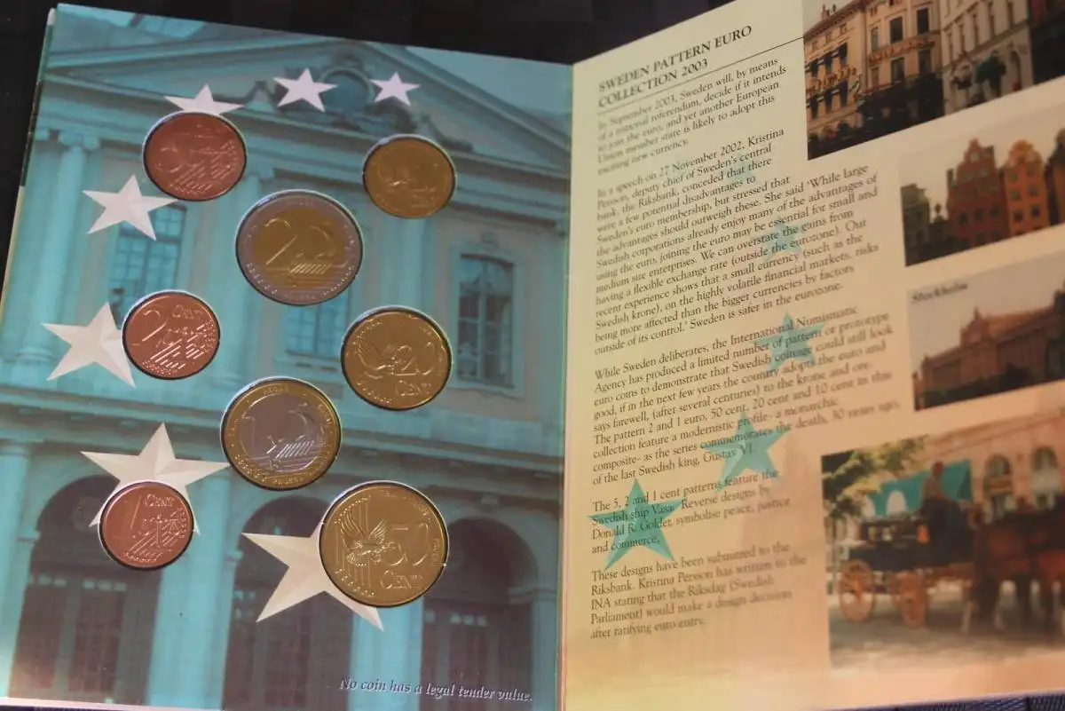 Schweden Kursmünzensatz 2003; EURO Pattern Set; Prov; Probemünzen im Folder
