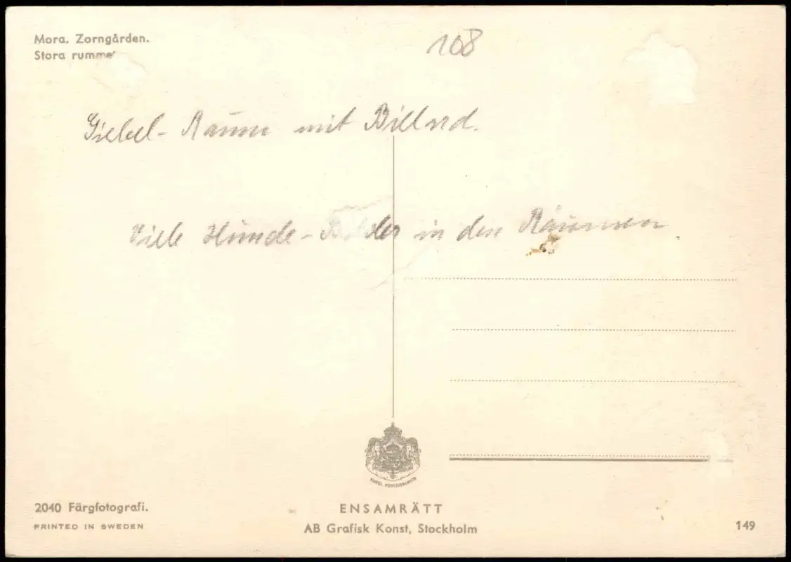 Name: Schweden Sweden Servige Mora. Zorngården. Stora rumme