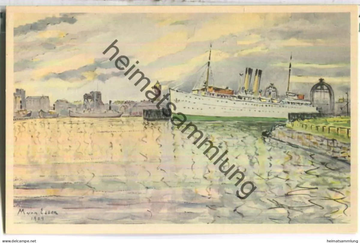 Schweden - Trelleborg - Tagfärjan Konung Gustaf V - signiert M von Essen (E89190) *