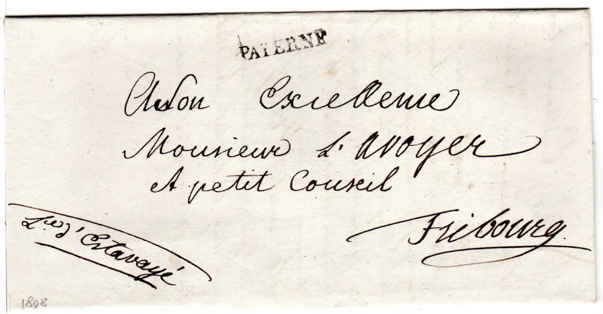 Schweiz 1808, L1 PAYERNE auf Brief v. Estavayer n.Fribourg