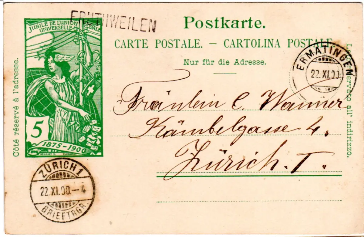 Schweiz 1900, Ermatingen u. Thurgau-L1 FRUTIWEILEN auf 5 C. Ganzsache
