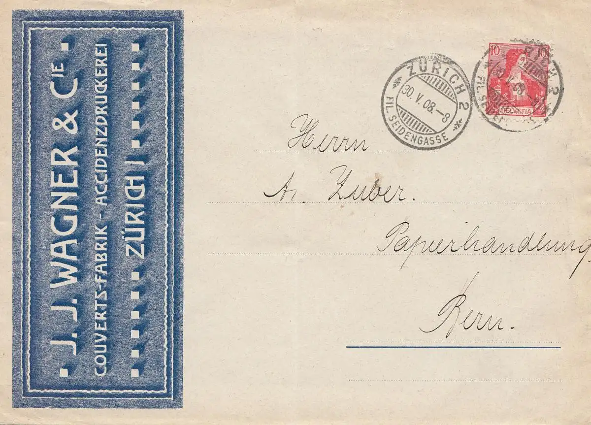 Schweiz: 1908: Zürich nach Bern; Kuvert Fabrik